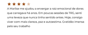 Terapeuta especializada em TRG (Terapia Reprocessiva Generativa) e Leitura Corporal. Marlise conduz sessões com empatia, respeito e profundo cuidado humano. Seu trabalho vai além das palavras. Ela acolhe quem carrega feridas, mesmo sem precisar contar o que doeu.
